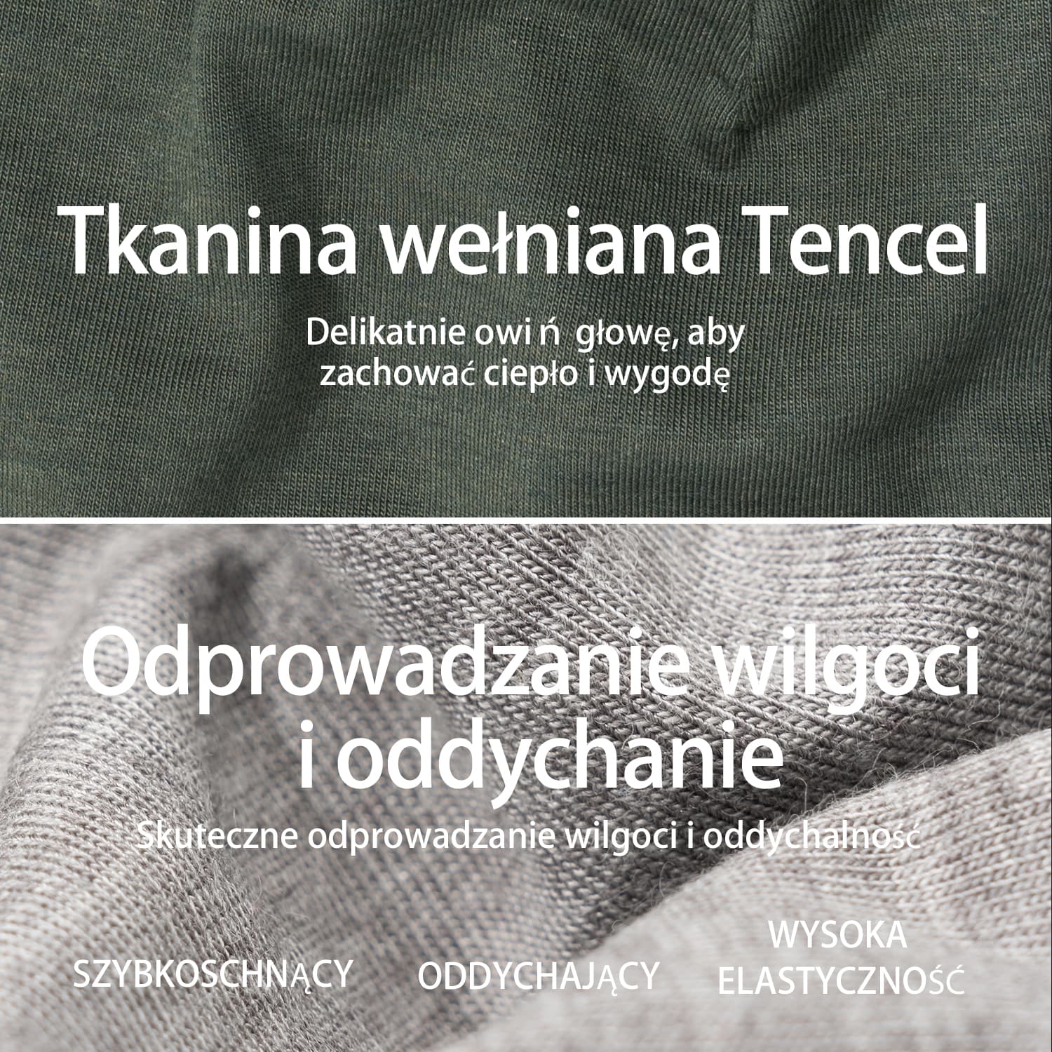 Innowacyjna tkanina z wełny i Tencelu skutecznie zatrzymuje ciepło, jednocześnie odprowadzając wilgoć z powierzchni skóry. Dzięki temu głowa pozostaje sucha i ciepła nawet podczas długich, intensywnych treningów w niskich temperaturach.