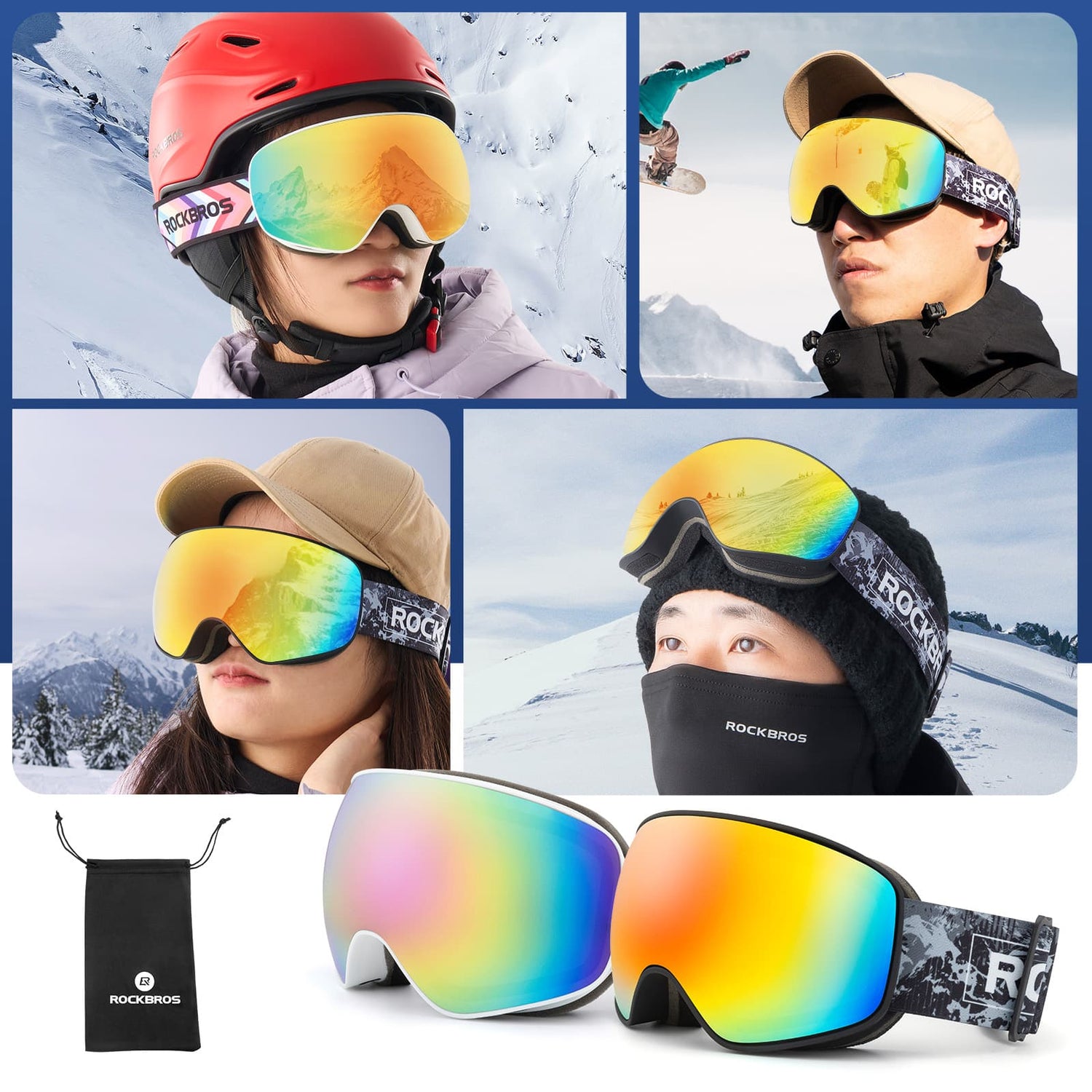 ROCKBROS Okulary Narciarskie Gogle dla Dorosłych i Dzieci, Przeciwmgielne, Regulowany Pałąk