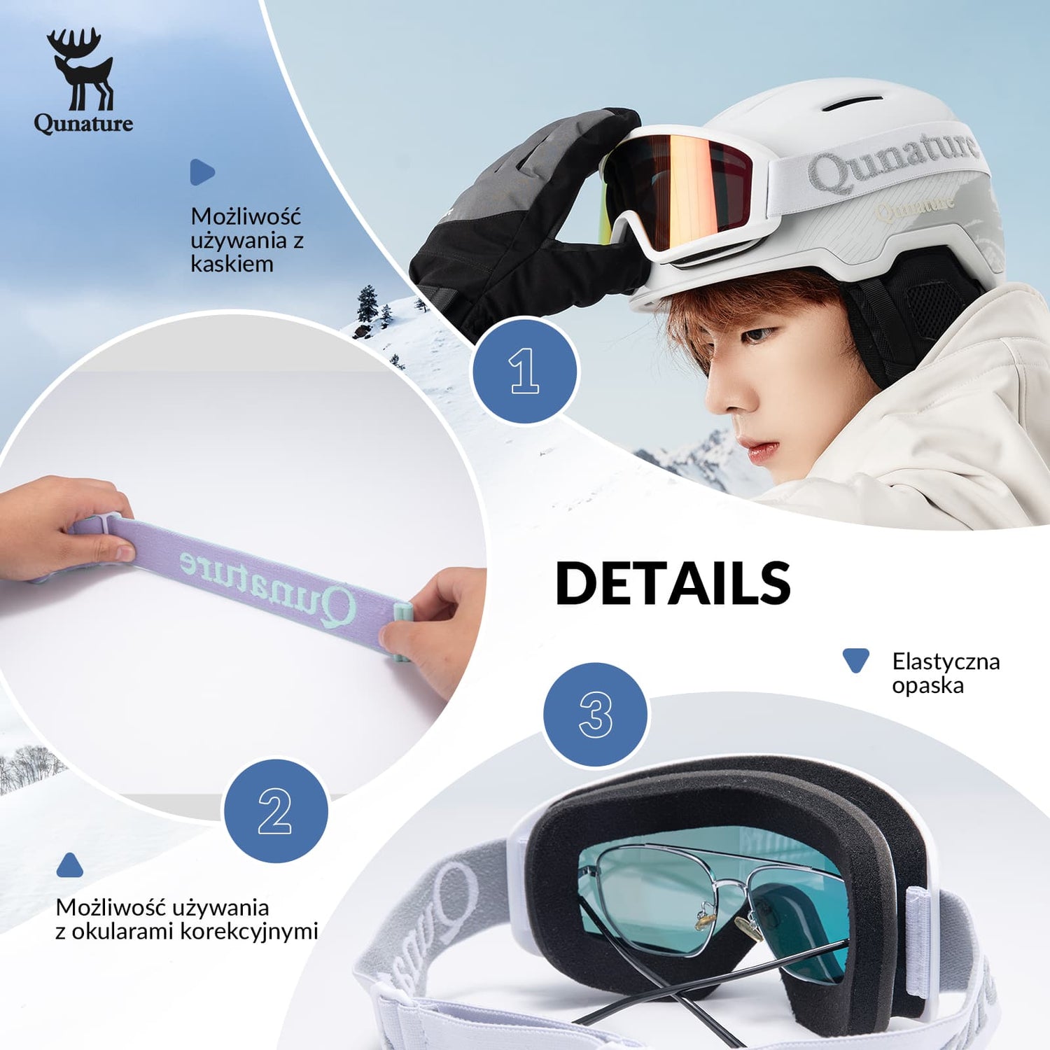 Gogle Qunature chronią oczy przed wiatrem i śniegiem, sprawdzając się w narciarstwie, snowboardzie, jeździe na skuterach śnieżnych, wspinaczce górskiej czy rowerze zimowym.