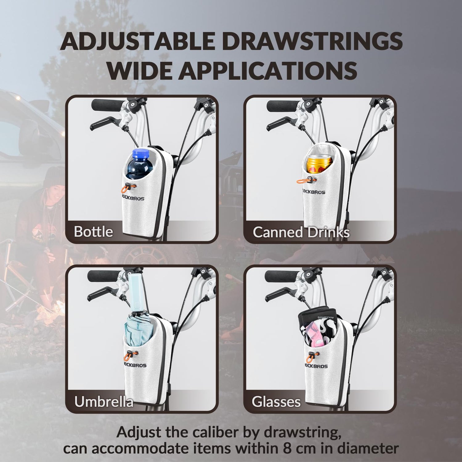 - 【SZEROKIE ZASTOSOWANIE】Uchwyt na bidon nadaje się do hulajnóg elektrycznych, rowerów składanych, rowerów górskich, rowerów szosowych itp. Przednia kieszeń może pomieścić przedmioty o średnicy do 8 cm. Można w niej przechowywać napoje w puszkach lub butelkach, rękawiczki, składany parasol i okulary.