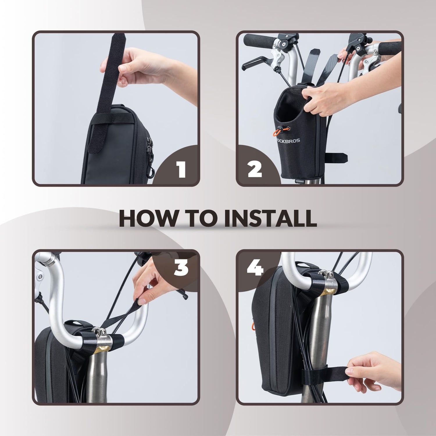 【SZYBKI MONTAŻ】Nie potrzeba żadnych narzędzi. Torbę na butelkę można łatwo i bezpiecznie przymocować za pomocą 3 regulowanych rzepów. Zdejmowanie jest równie szybkie i łatwe. Przednią torbę można łatwo zabrać ze sobą po zakończeniu jazdy.