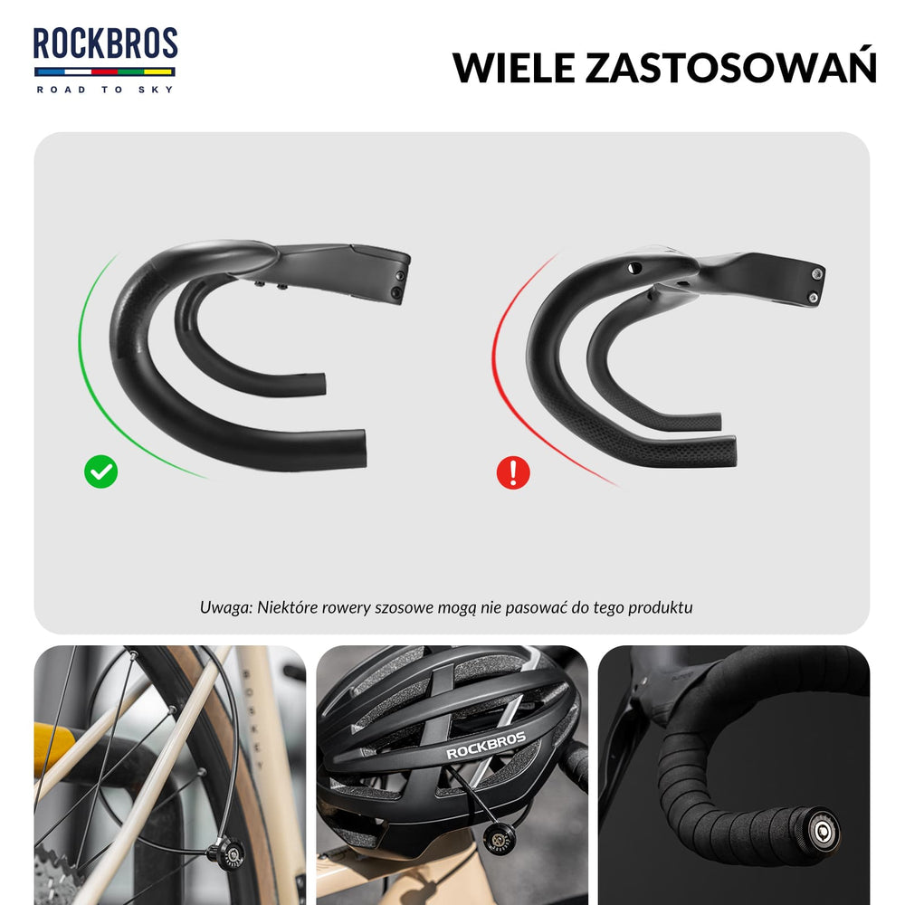 Uwaga: Niektóre rowery szosowe o dużym wygięciu kierownicy mogą nie być kompatybilne. Prosimy o wcześniejszą konsultację lub przesłanie zdjęcia do obsługi klienta.