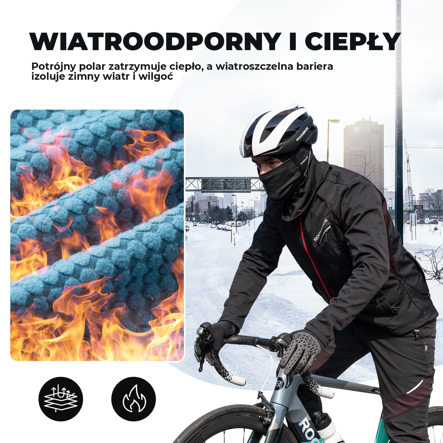 Wykonane z wytrzymałego poliestru i miękkiego termopolaru, skutecznie chronią przed wiatrem i utratą ciepła. Wewnętrzna polarowa warstwa zapewnia długotrwałe ciepło oraz komfort podczas zimowych przejażdżek.