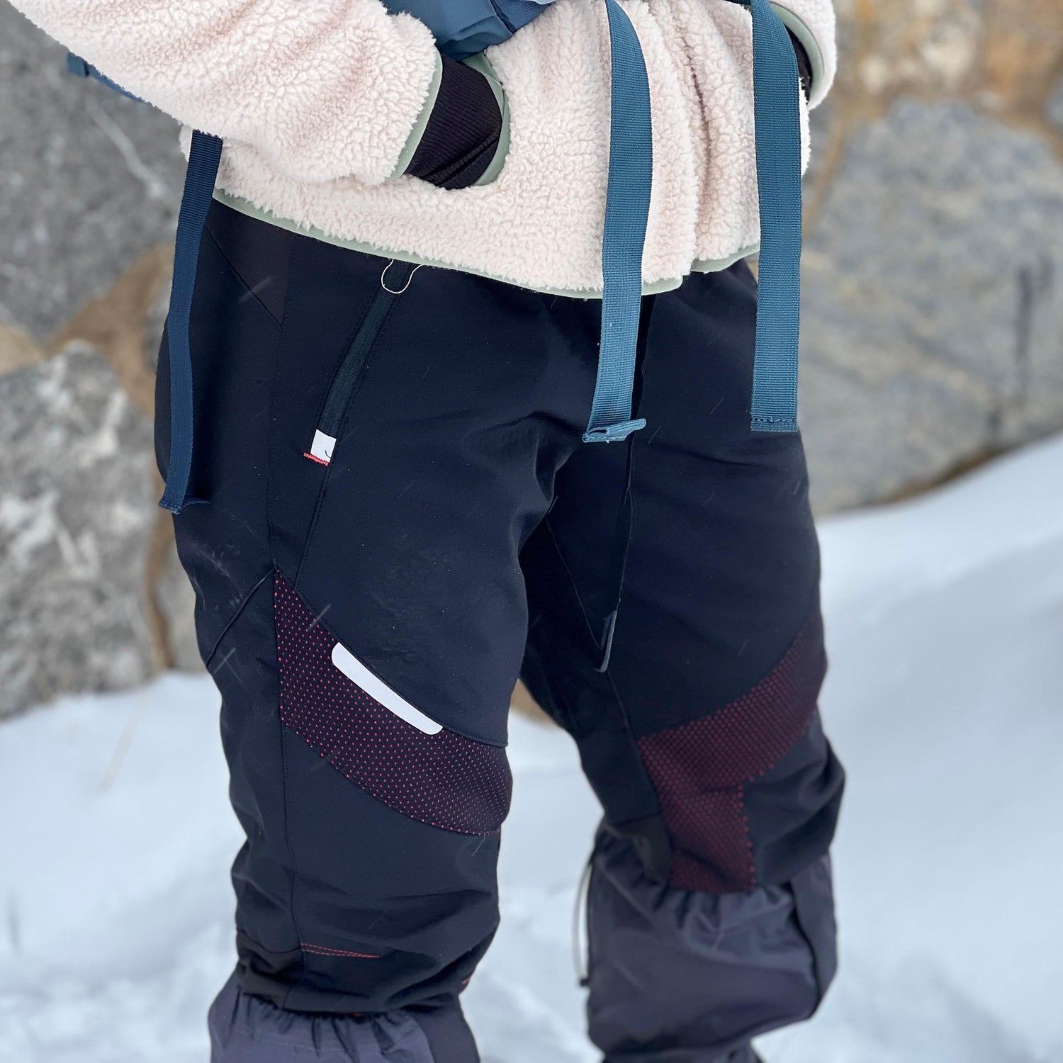 Elastyczny, oddychający materiał gwarantuje swobodę ruchów bez uczucia duszności. Trójwymiarowy krój w okolicach kolan zwiększa mobilność, a regulowany pas pozwala idealnie dopasować spodnie do sylwetki.