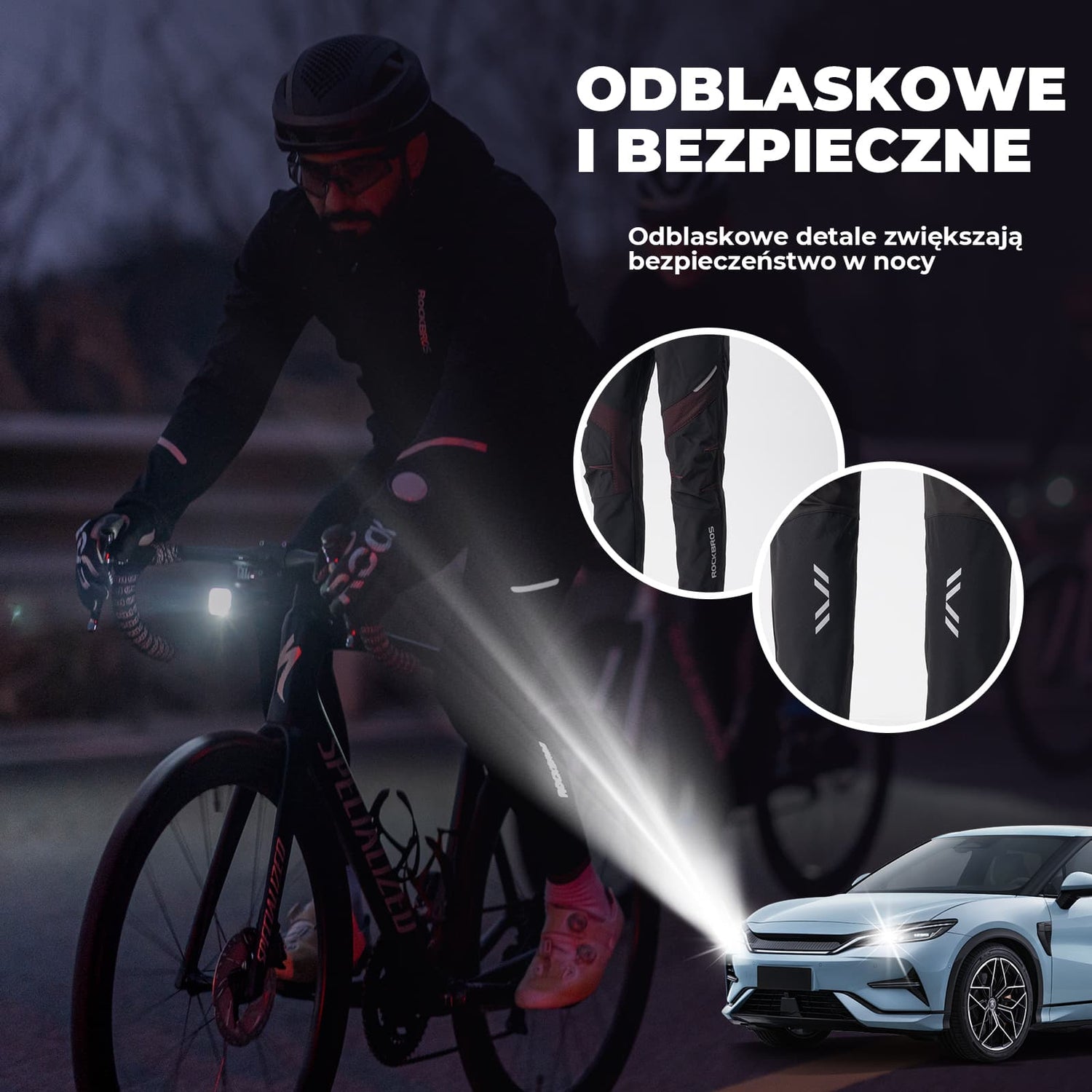 Paski odblaskowe poprawiają widoczność w słabym oświetleniu, zwiększając bezpieczeństwo podczas jazdy nocą lub o świcie.Wielowarstwowa tkanina kompozytowa, materiał powierzchniowy ma właściwości wodoodporne.