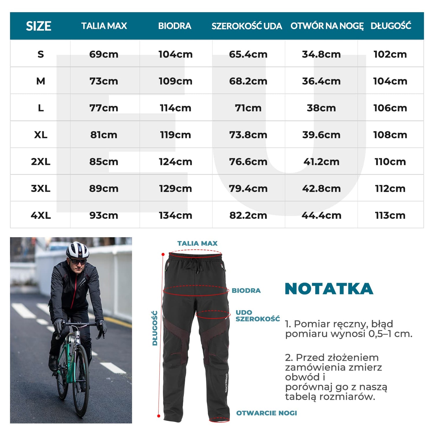 ROCKBROS Zimowe Spodnie Rowerowe Ciepło, Wygoda i Ochrona w Chłodne Dni