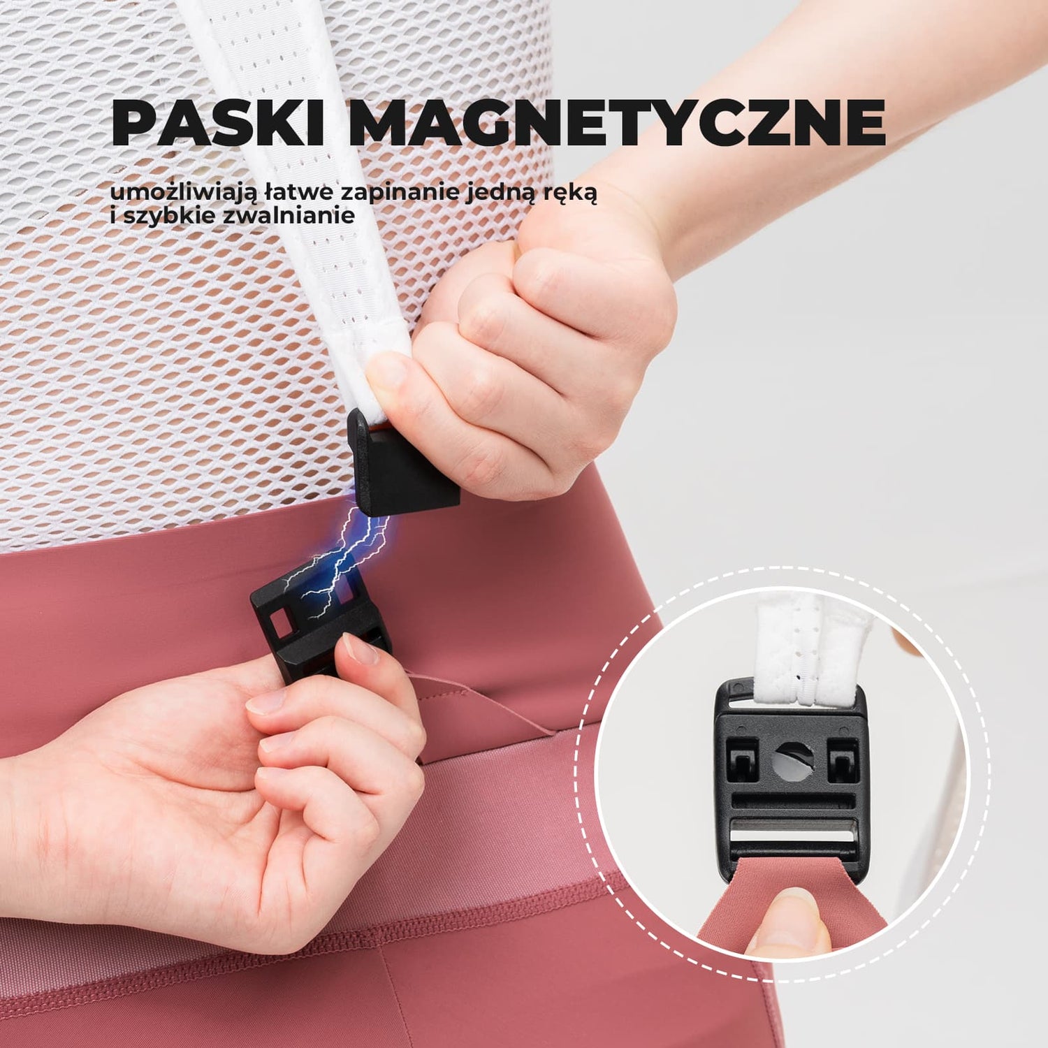 Zaawansowana klamra magnetyczna – idealne dopasowanie Innowacyjne zapięcie magnetyczne gwarantuje pewne trzymanie szelek na miejscu, eliminując potrzebę ciągłego poprawiania odzieży w trakcie jazdy. Mechanizm ten pozwala na szybkie i wygodne dopasowanie spodenek, dzięki czemu możesz w pełni skupić się na trasie przed Tobą.