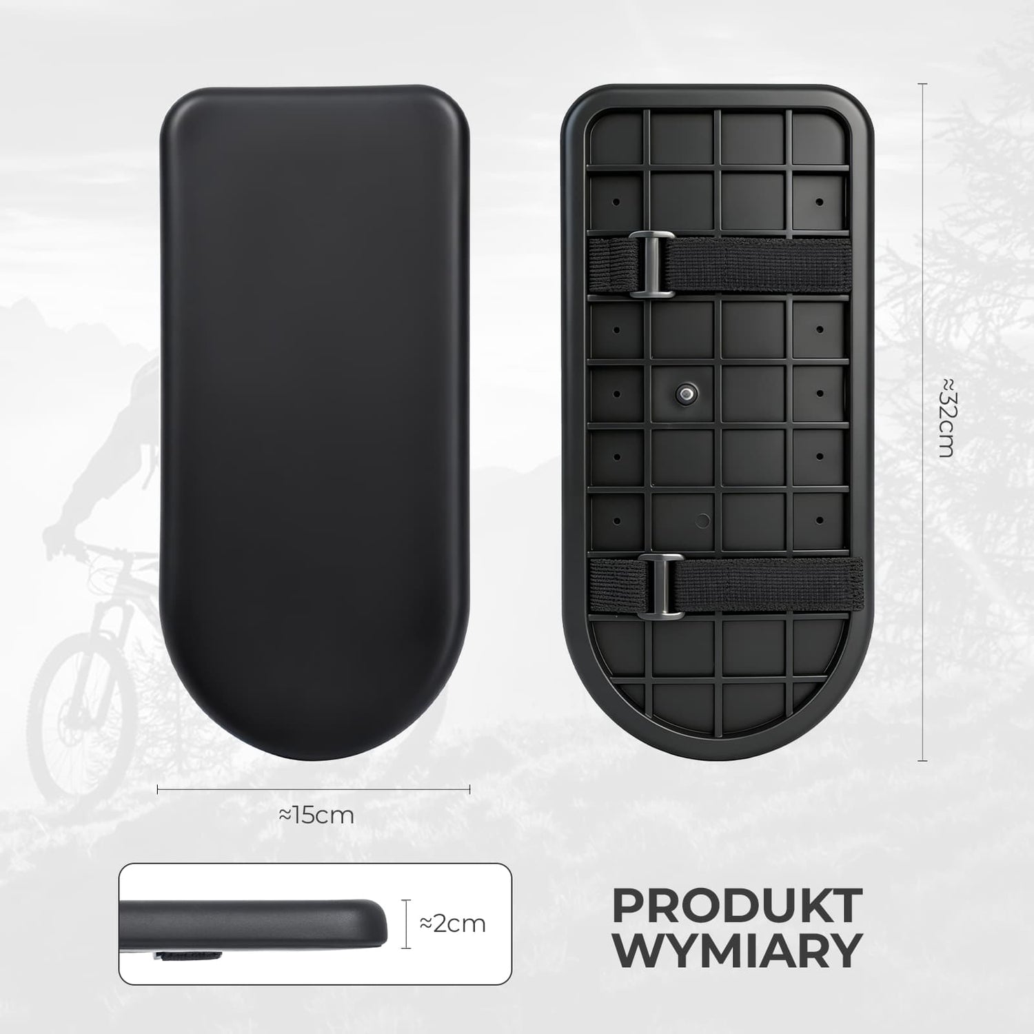 Szeroka kompatybilność i uniwersalność Siedzisko posiada uniwersalny rozmiar, dzięki czemu pasuje do większości standardowych bagażników rowerowych dostępnych na rynku. Jest to idealne rozwiązanie do rowerów miejskich, trekkingowych oraz e-bike, podnoszące komfort pasażera.