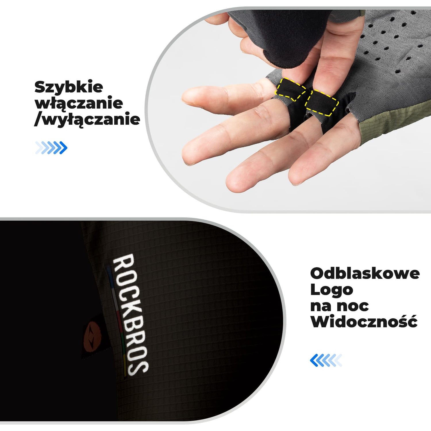 Łatwe zdejmowanie – szybki system "Pull-off" Zintegrowane uchwyty przy palcach umożliwiają błyskawiczne i bezproblemowe zdjęcie rękawiczek, nawet po wyczerpującym treningu. Elastyczny mankiet sprawia, że zakładanie jest równie proste i nie wymaga dodatkowych rzepów, co poprawia aerodynamikę.