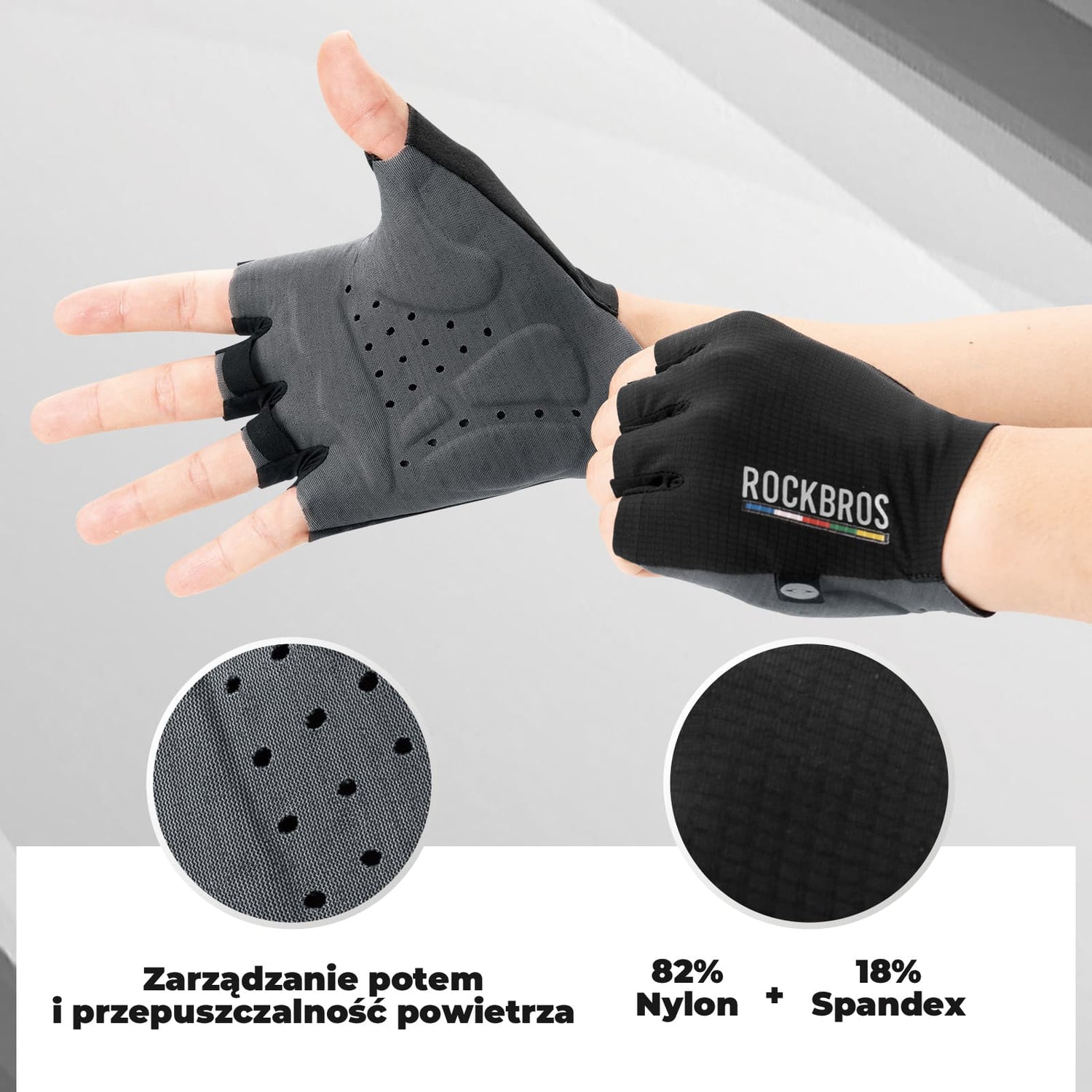 ROCKBROS ROAD TO SKY Rękawiczki Rowerowe TLS006 – Bez Palców, Żelowe i Antypoślizgowe