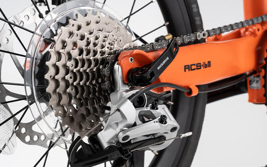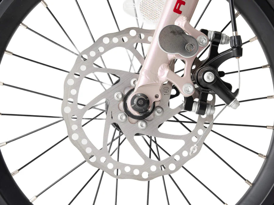 Lekka aluminiowa rama z precyzyjnymi spoinami i wytrzymałym mechanizmem składania zapewnia stabilność i długą żywotność. 9-biegowy system SRAM gwarantuje płynne zmiany biegów – idealny zarówno na miejskie podjazdy, jak i płaskie trasy. Mechaniczne hamulce tarczowe zapewniają niezawodną siłę hamowania w każdych warunkach, a odporne na przebicia 16-calowe opony gwarantują komfort i kontrolę na miejskich ulicach.
