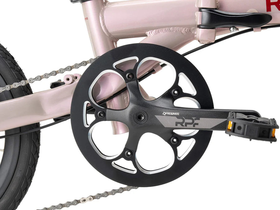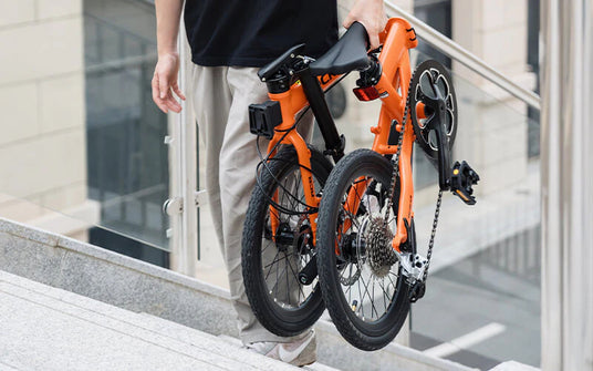 16-calowa składana rama z lekkiego stopu aluminium stosowanego w lotnictwie jest znacznie lżejsza od stalowych ram – idealna do przenoszenia jedną ręką. Precyzyjne spoiny zapewniają sztywność, a zawias gwarantuje trwałą stabilność. Doskonała dla praktycznych i stylowych osób dojeżdżających do pracy.