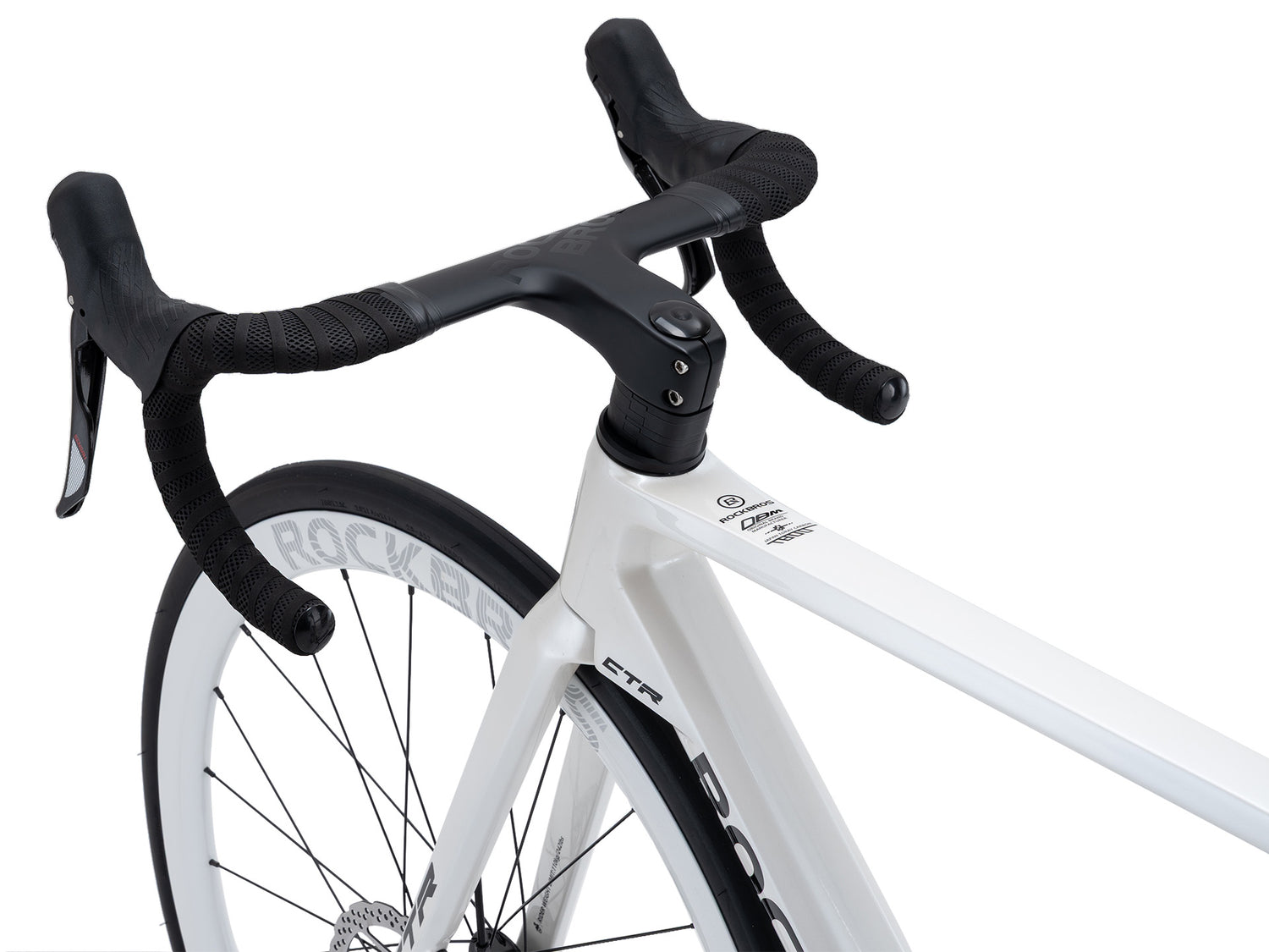 Jednoczęściowa kierownica z włókna węglowego łączy niską masę, wysoką sztywność oraz skuteczne tłumienie drgań. Jej aerodynamiczny profil zmniejsza opór powietrza, a w pełni zintegrowane prowadzenie linek zapewnia estetyczny wygląd i dodatkową ochronę.