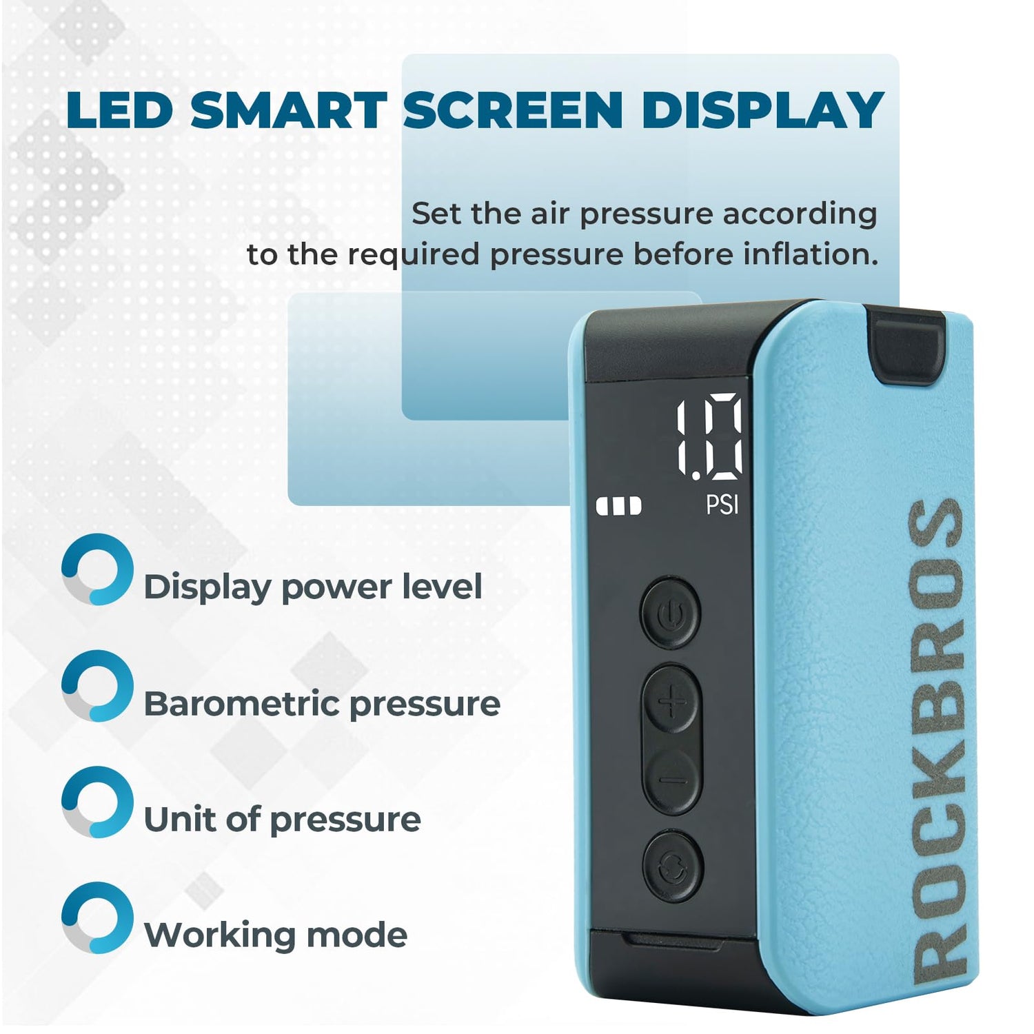 - 🚲【SZYBKIE ŁADOWANIE】Pompka posiada wbudowany akumulator o pojemności 1400 mAh. Jest wyposażona w wyświetlacz LED, który pokazuje stan naładowania akumulatora i ciśnienie powietrza.