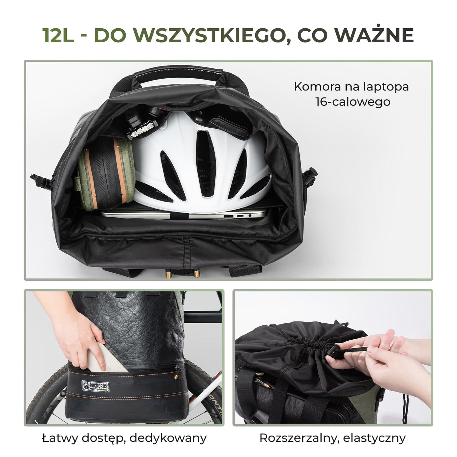Duża przestrzeń 12 l pozwala zabrać ze sobą więcej niż tylko najpotrzebniejsze rzeczy – idealna na weekendowe wyprawy rowerowe, zakupy lub mniejsze wycieczki z plecakiem.
