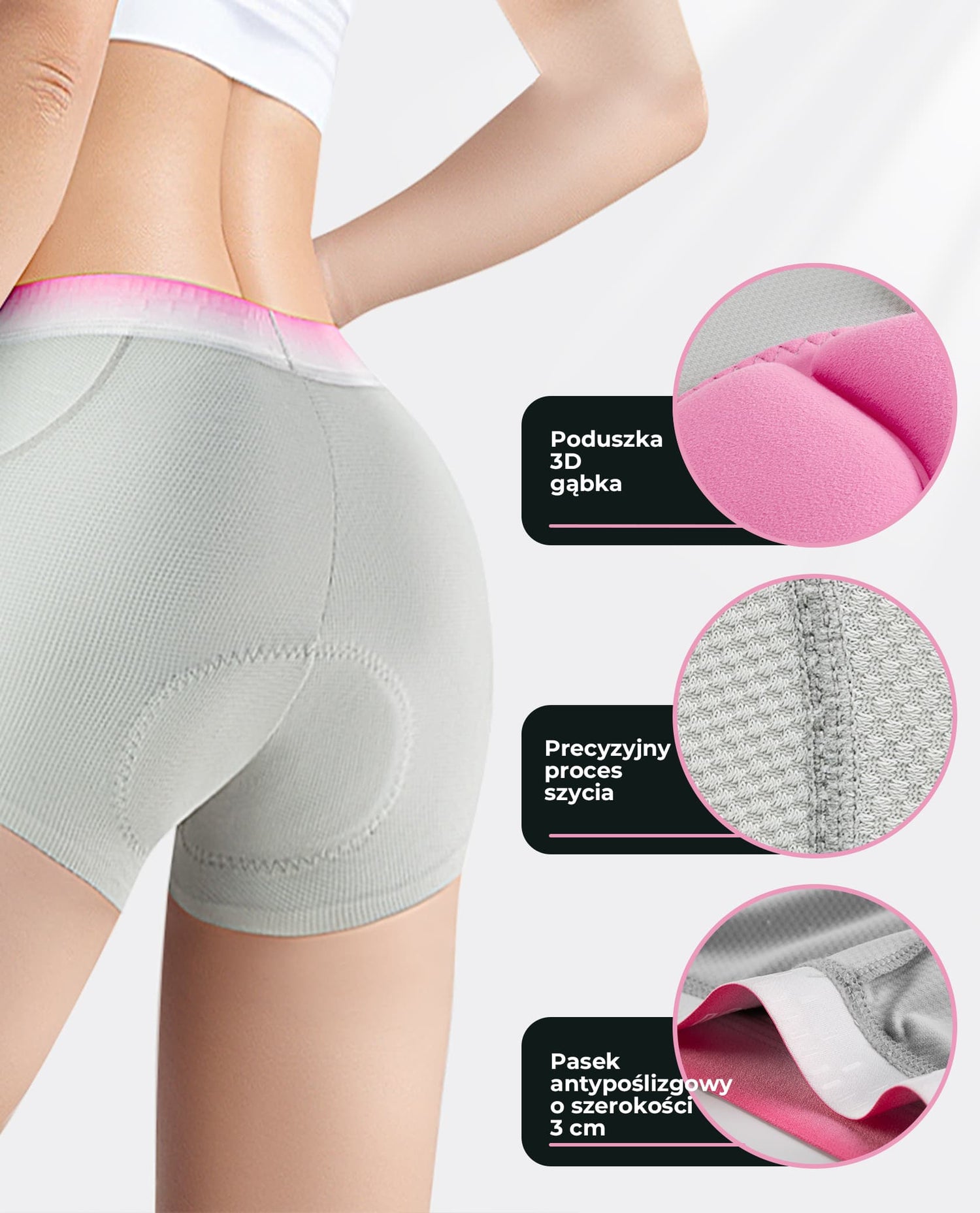 Ergonomiczna wkładka 3D – komfort i ochrona Zintegrowana wkładka 3D została zaprojektowana specjalnie z myślą o damskiej anatomii. Skutecznie amortyzuje wstrząsy, redukuje nacisk na wrażliwe miejsca i zapobiega dyskomfortowi podczas jazdy na twardym siodełku, zapewniając wsparcie tam, gdzie jest ono najbardziej potrzebne.