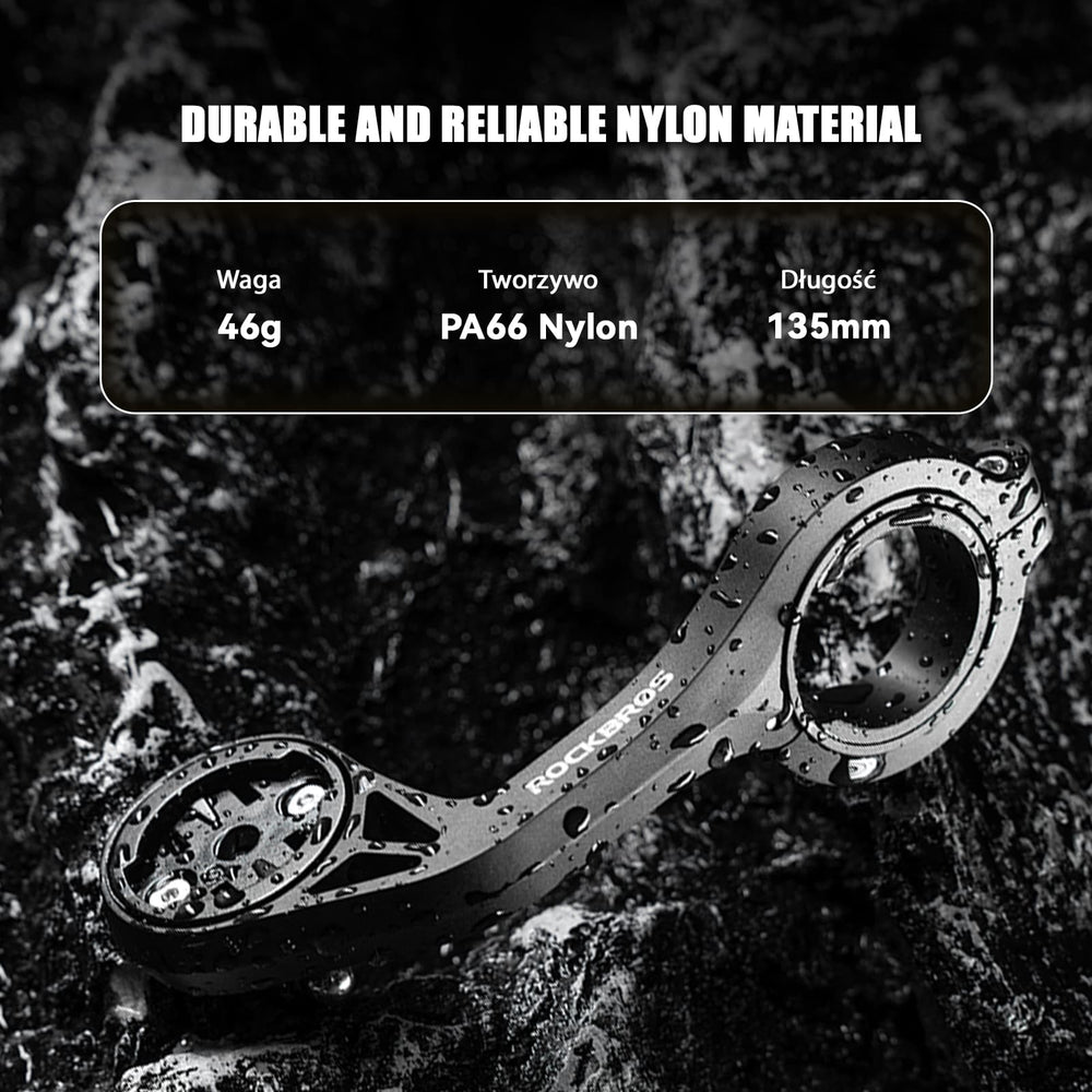 Wykonany z odpornego na korozję nylonu uchwyt waży zaledwie 46 g. Materiał skutecznie absorbuje drgania, jest odporny na wstrząsy i upadki, dzięki czemu stabilnie utrzymuje urządzenia nawet podczas jazdy w trudnym terenie.