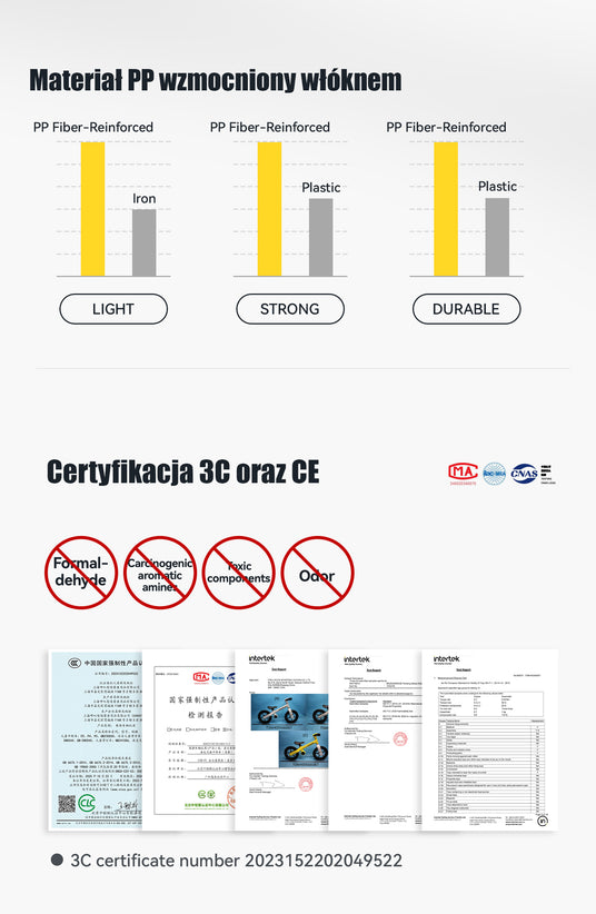 | Materiał | Tworzywa sztuczne: PP, PU itp. |