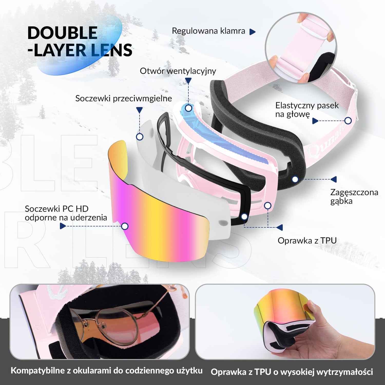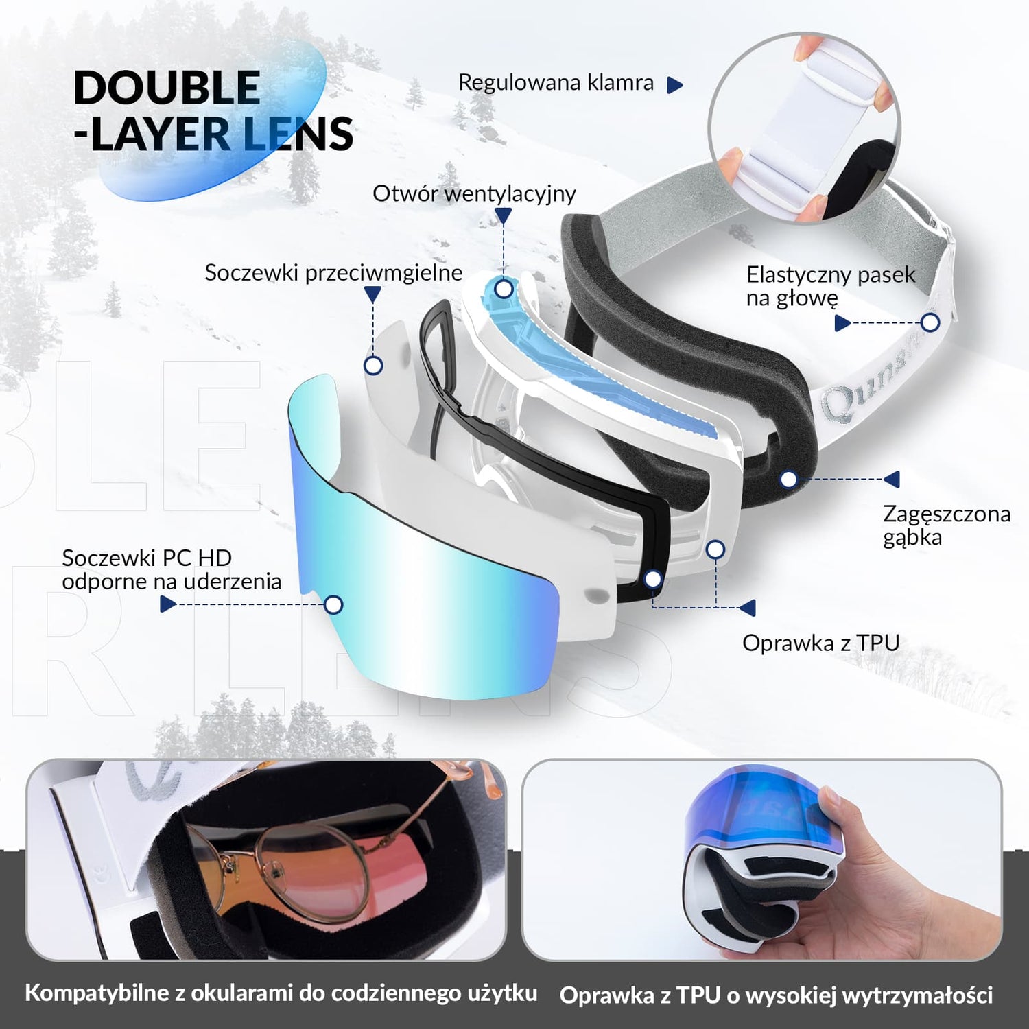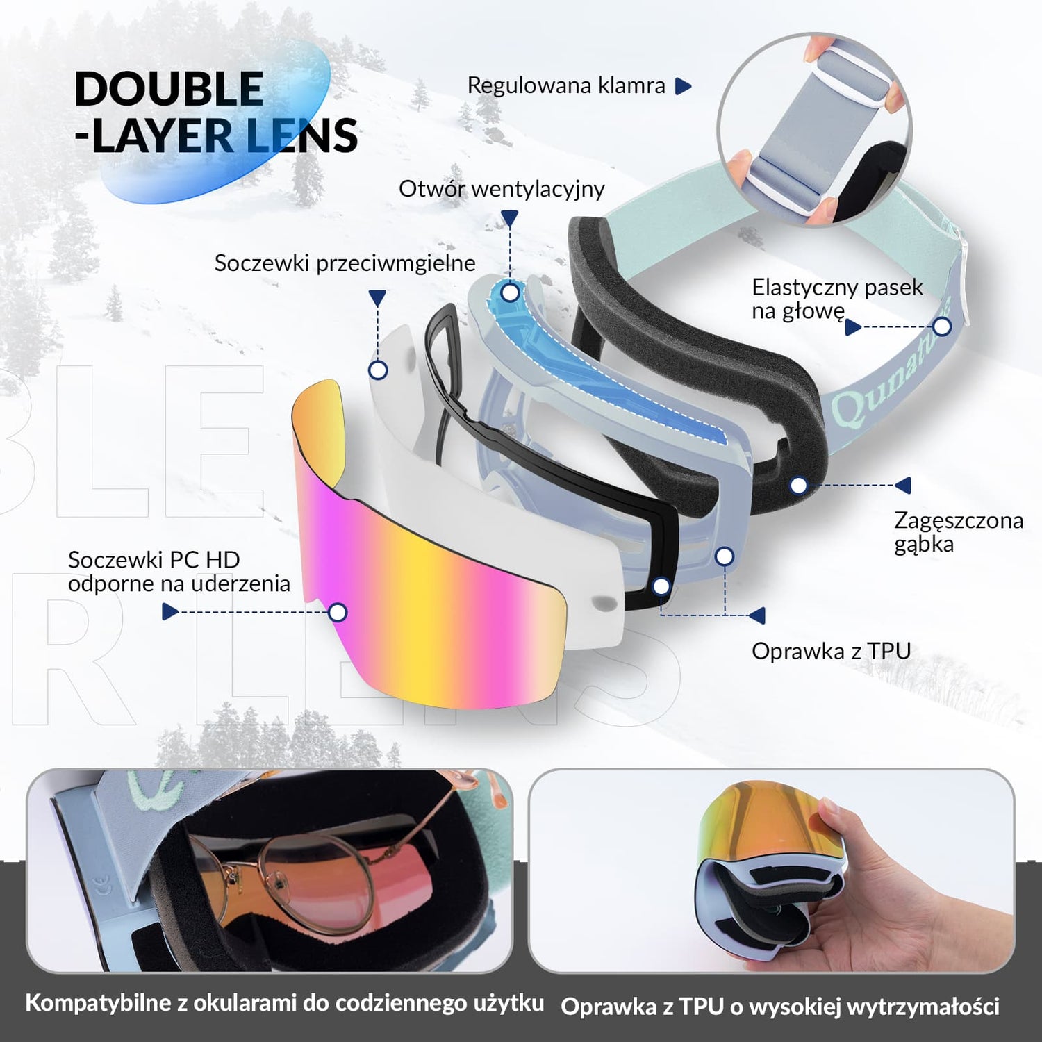 Qunature Gogle Narciarskie Bezramkowe Dla Mężczyzn I Kobiet Przeciwmgielną-Q23-007