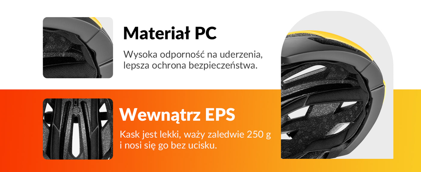 Materiały: skorupa PC + wewnętrzna skorupa EPS