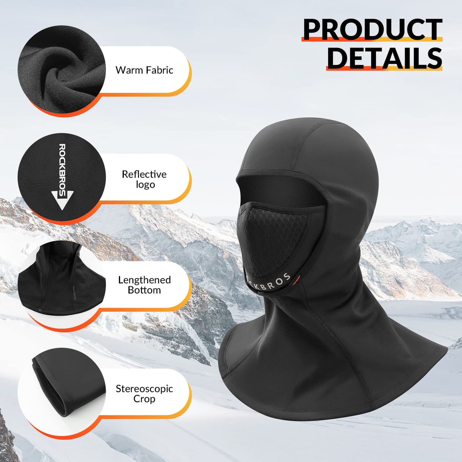 ROCKBROS Kominiarka Motocyklowa Rowerowa Zimowa Kominiarka Mężczyźni Kobiety Ciepła Maska Narciarska Oddychająca Maska Na Twarz Wiatroszczelna 60-63 cm