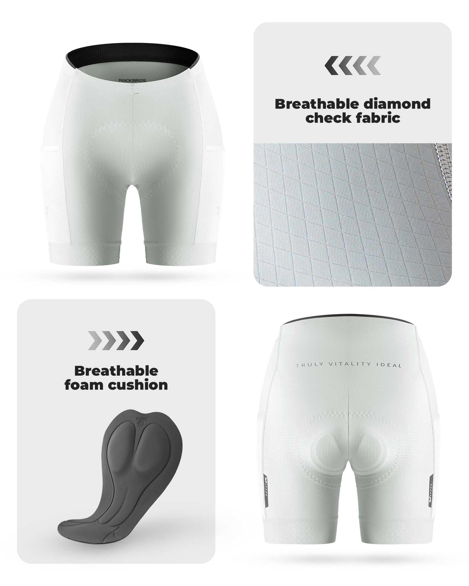 ROCKBROS TVI spodenki rowerowe damskie z kieszenią, spodenki rowerowe krótkie letnie oddychające szybkoschnące spodenki rowerowe elastyczne z wkładką