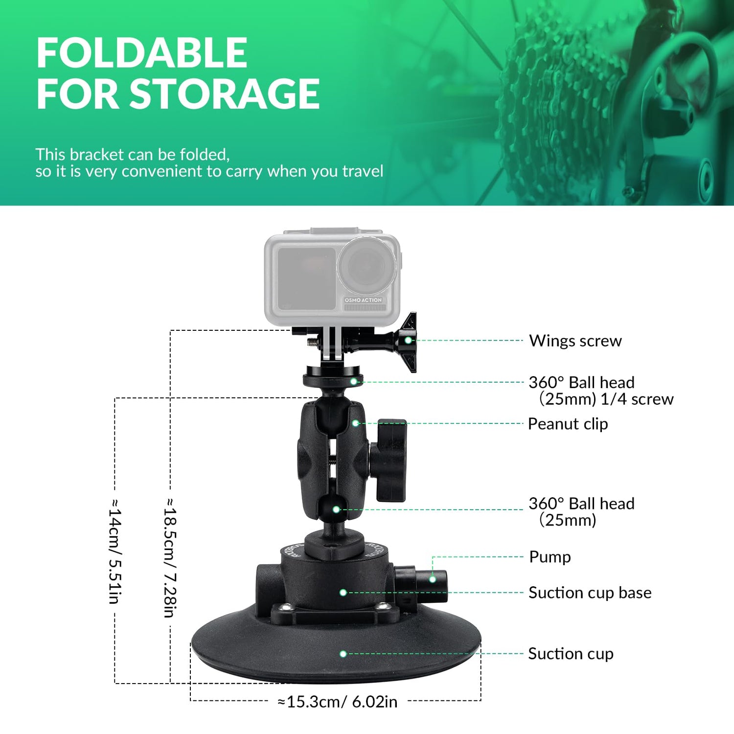 - 【KOMPAKTOWY & SZEROKO STOSOWANY】 Mały, składany i przenośny, nie zajmuje dużo miejsca. Przyssawkę można bezpiecznie przymocować do dowolnej gładkiej powierzchni, takiej jak powierzchnie metalowe / ceramiczne, szyby przednie, szklane drzwi, drzwi samochodowe, maski, dachy samochodów, okna i inne.