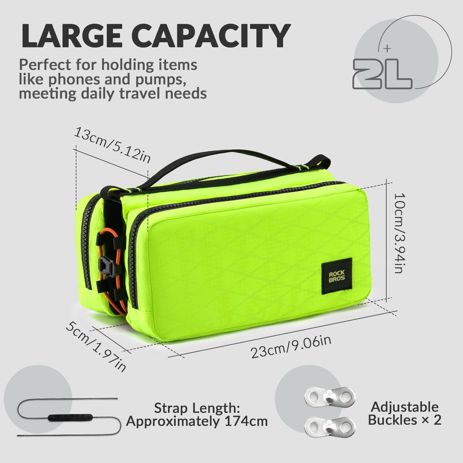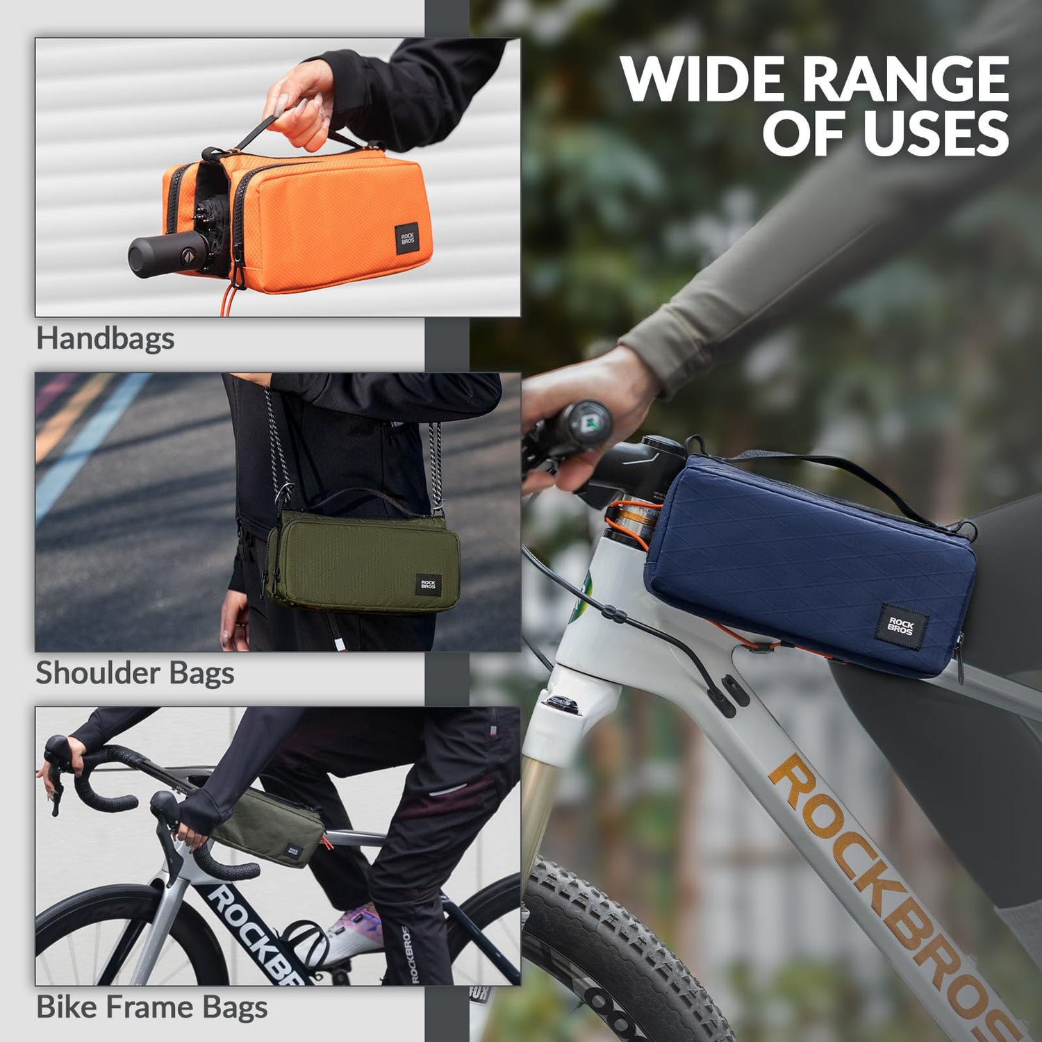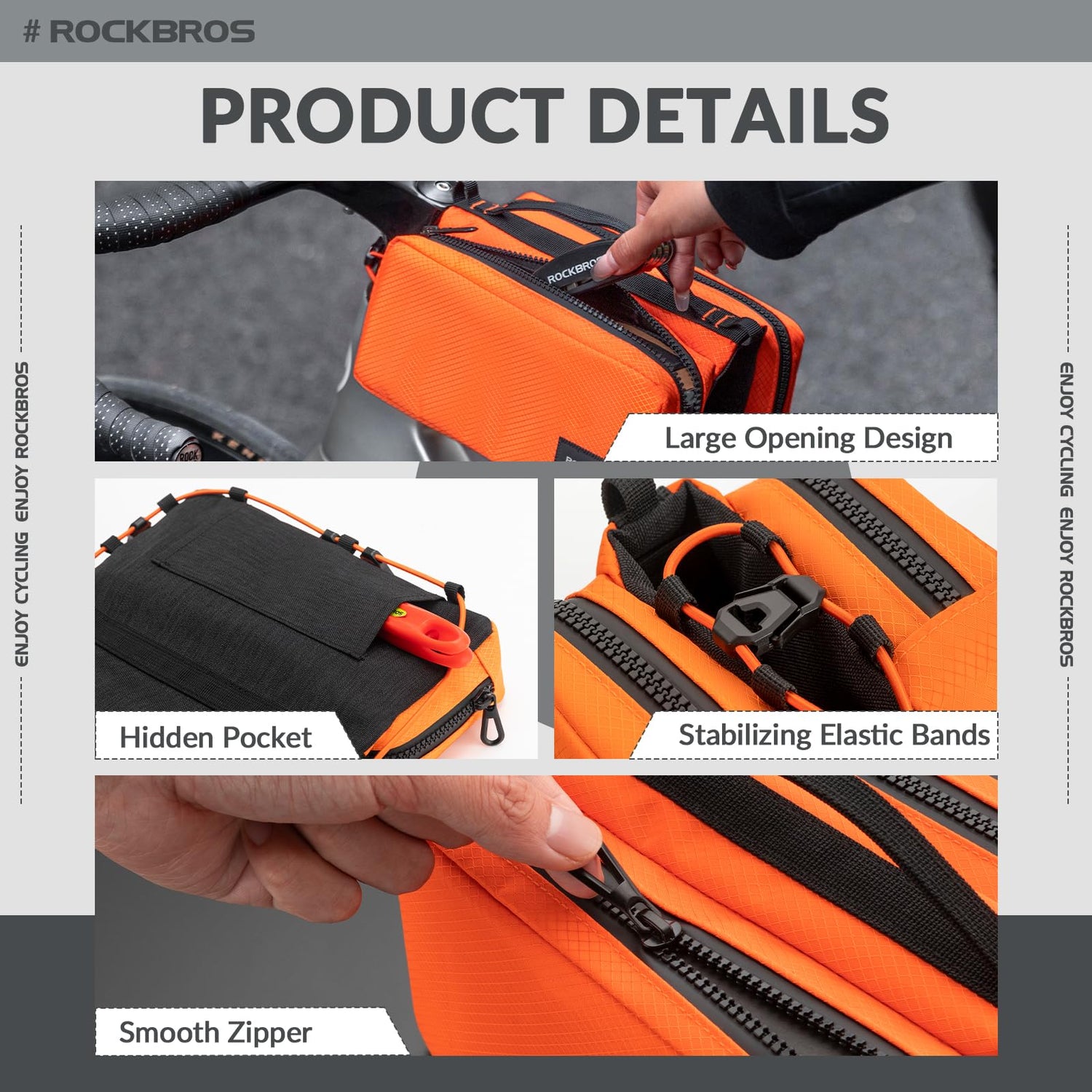 - 【DUŻA POJEMNOŚĆ】Torba na ramę roweru ROCKBROS składa się z 2 bocznych kieszeni o wymiarach 23*5*10 cm, zapewniających wystarczająco dużo miejsca na codzienne potrzeby, takie jak telefon, pompka i klucze.